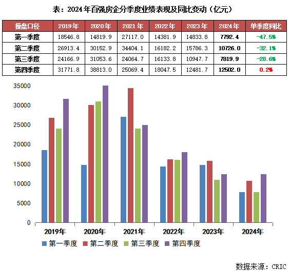 合座来看,2024年中国房地产市集延续筑底调养的态势,前三季度市集基本处于低位驱动。而收货于9月末和解的新政利好,四季度企业销售翘尾回升,第四季度百强房企销售操盘金额同比转正,微增0.2%,企业销售推崇明显优于前三季度。